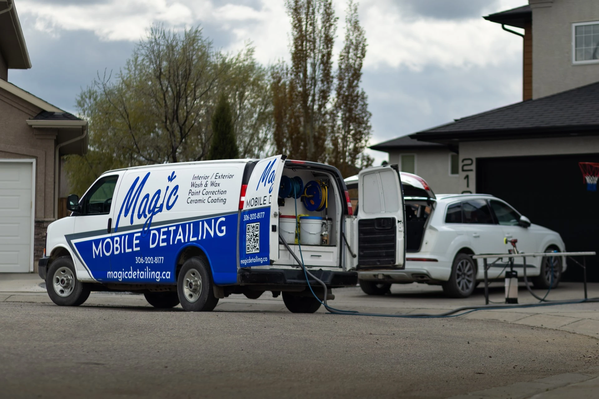 We bring our own power, water, and all the equipment we need to give your vehicle a full inside and out detail right on the spot.